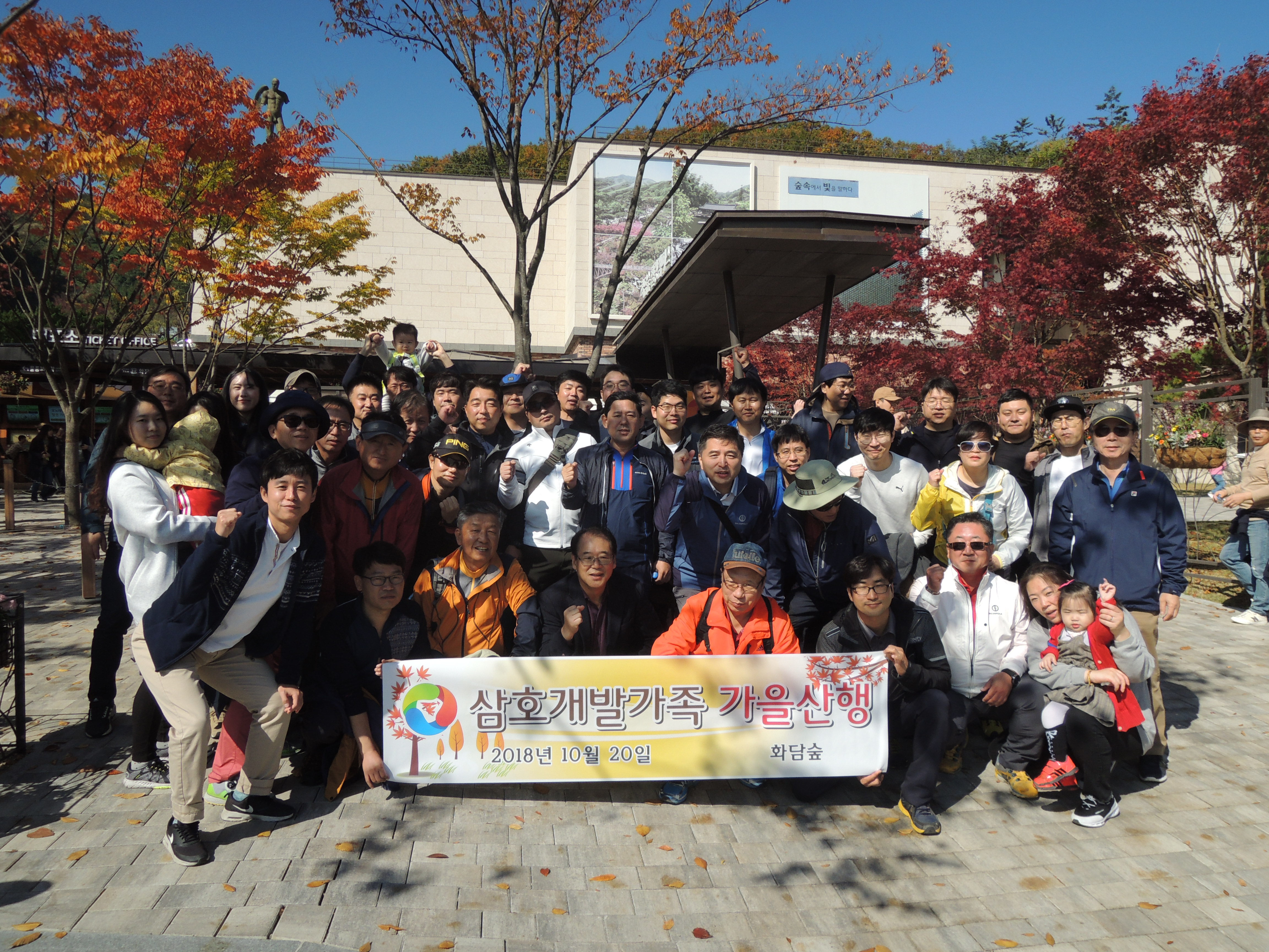 삼호개발 및 관계사 임직원들의 근무의욕 고취 및 친목단합을 위하여 2018.10.20에 곤지암 화담숲으로 가을산행을 실시하였습니다.