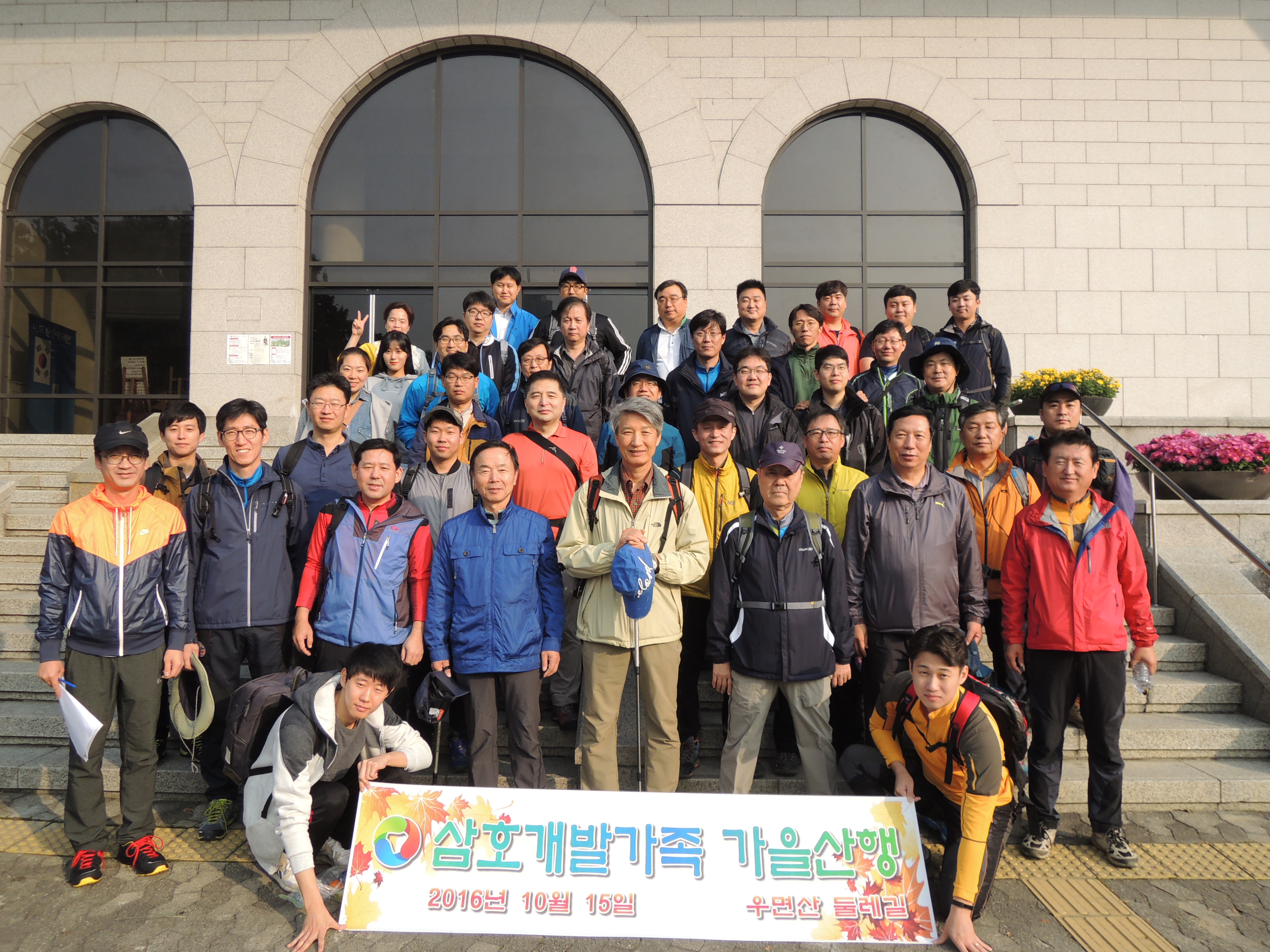 삼호개발 및 관계사 임직원들의 근무의욕 고취 및 친목단합을 위하여 2016.10.15에 서울 우면산 둘레길로 가을산행을 실시하였습니다.