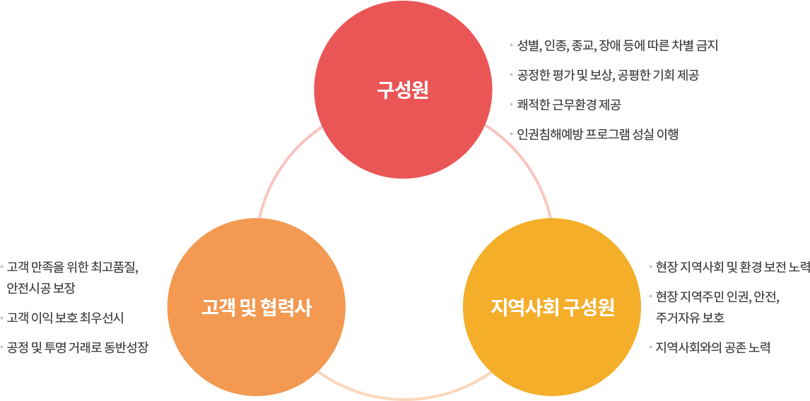 삼호개발은 임직원뿐만 아니라 고객사, 협력사, 지역사회 주민 등 모든 이해관계자의 인권 보호를 위해